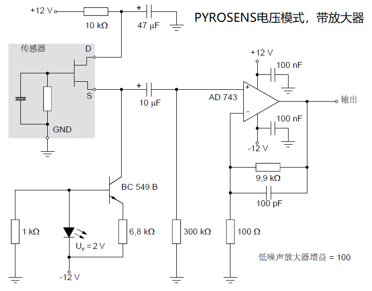 焦熱電紅外探測(cè)器電路圖 , 電壓模式電路圖 , 帶放大器的電壓模式電路圖